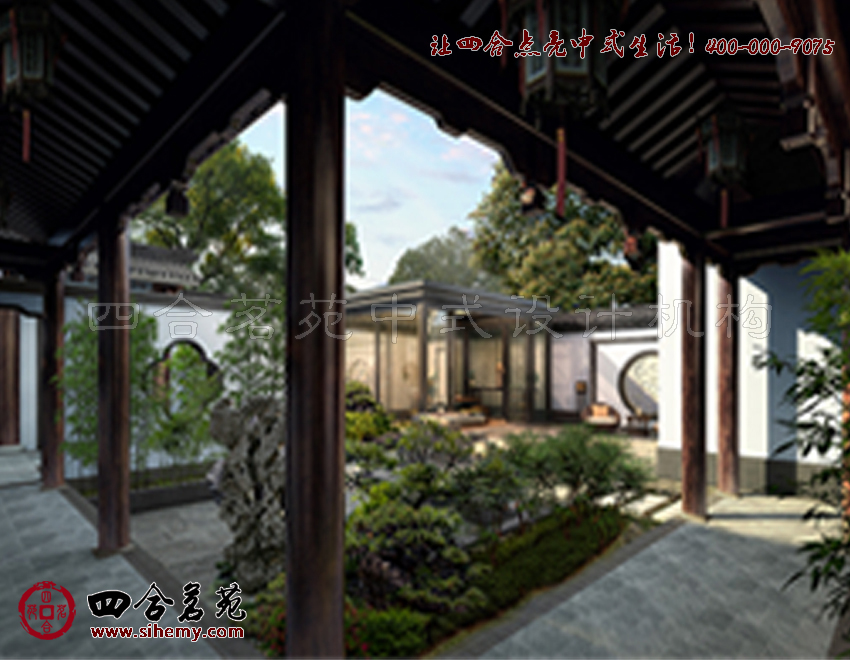 對于中式元素運用,可以勾勒出更多設(shè)計方案中的中式體驗。四合茗苑關(guān)注中式元素運用。粉墻黛瓦的院墻,漏窗花窗造型各異,色彩淡雅,在庭院中線條與色彩交相輝映中合院顯得溫馨而幽謐。