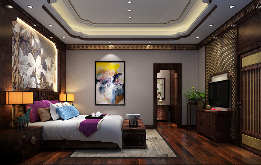 造型簡潔的家具,色彩豐富的軟裝,通過色彩及形體變化的挖掘來調節空間視點。古典的裝飾氛圍搭配現代的典雅燈具,詮釋出低調的奢華感。