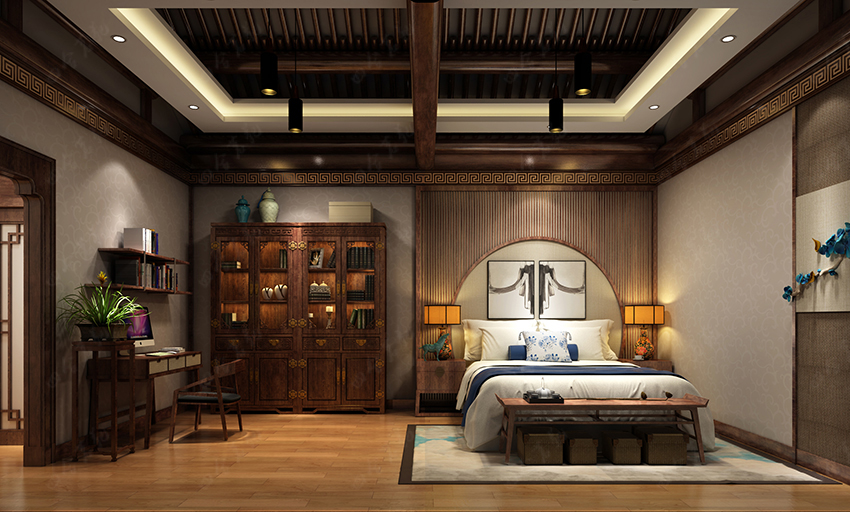 追尋往昔,我們不難發現,真正的生活應該和植物、山水、平和、文化結合在一起。設計師將這些概念寫入眾多裝飾元素:盆景、隔扇、山水畫、梁架、博古架、青瓷古玩,通過充滿匠心的布置合而為一,帶給人一種自然親切、古韻盎然的愜意體驗。