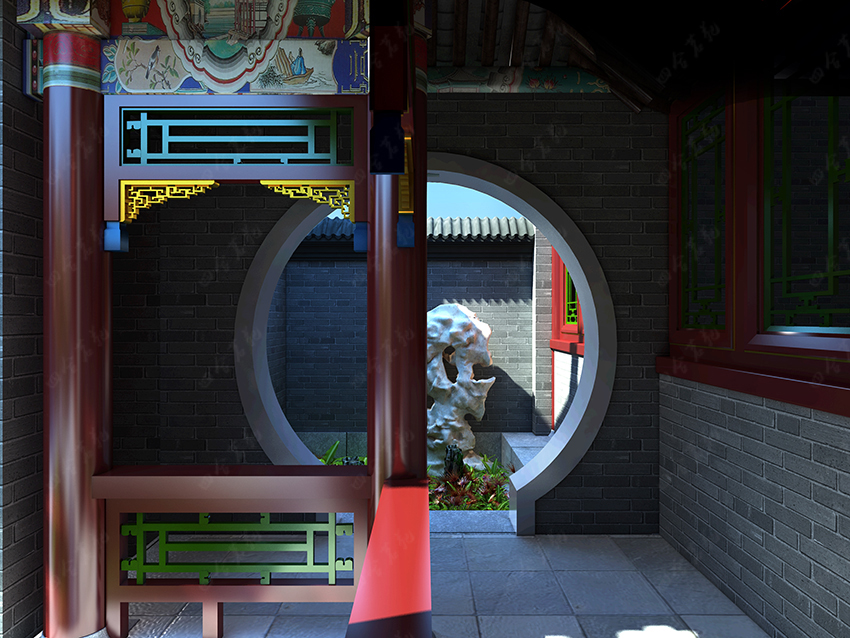 案例簡述:本案四合院設計,在保持原有建筑空間感的同時,加入非常具有傳統意味的中式裝飾元素:垂花門、彩畫等,再通過后期室內的家具、飾品配套去營造一種具有東方古典文化又涵蓋現代生活質地的中式感覺,定位為注重文化與品位的高端四合院設計裝修。