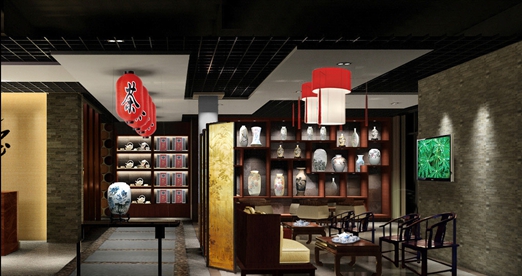 在很多優秀的茶樓中式設計中能看到運用的恰到好處的中式元素,比如照明燈具、仿古書籍、燭臺、竹簡、字畫、燈籠等等,這些細節的搭配使用能烘托出茶樓的高品位。