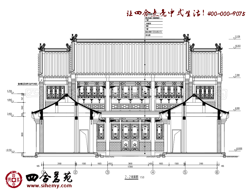 庭院中,鱗次櫛比的屋檐,構成線條,而整體裝飾在線條幾何圖形的排布中,給人幽雅與雋秀的視覺印象。